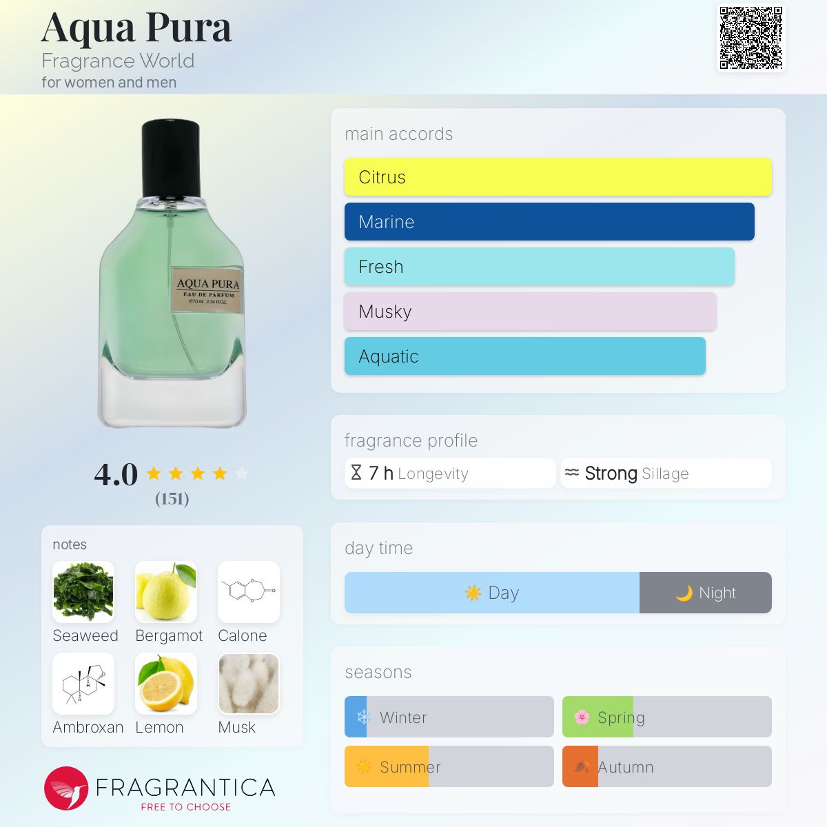 Middle notes: Calone, Hedione, Seaweed;