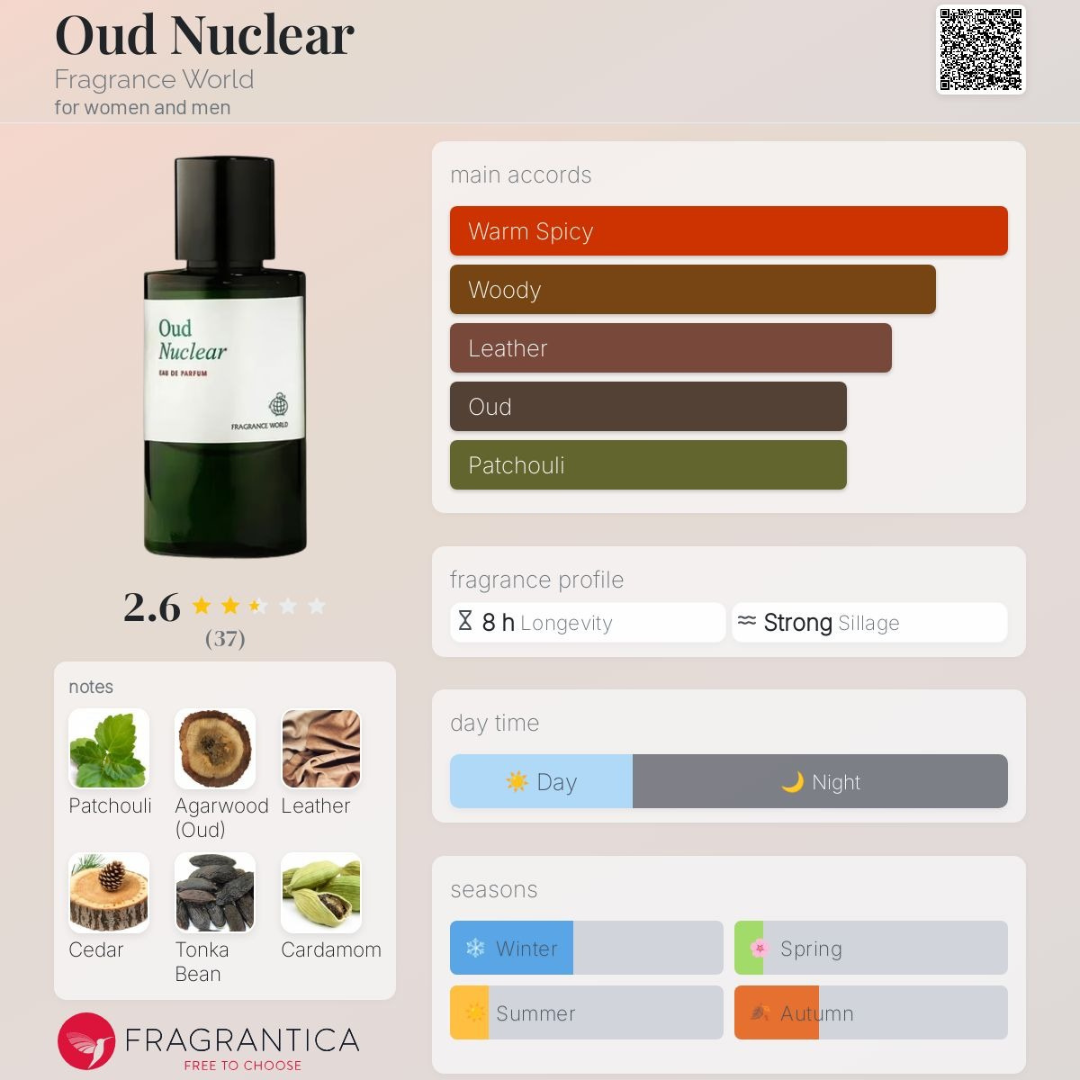 BASE NOTES: Agarwood (Oud), Leather, Cedar, Tonka and Patchouli.
