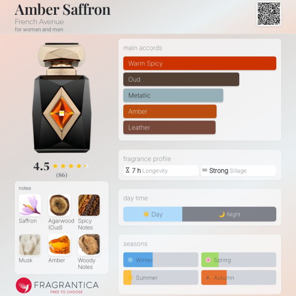 Amber Saffron by French Avenue is an exquisite fragrance that embodies the richness and warmth of a perfectly balanced composition. Crafted for those who appreciate a scent with depth and sophistication, this extrait de parfum envelops you in a luxurious and captivating aroma that lingers beautifully on the skin.
